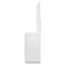 This dresser and mirror set brings streamlined function to contemporary bedrooms. The six-drawer dresser offers ample storage with smooth metal extension glides, while the mirror features a white high gloss frame that reflects light and complements the dresser’s modern silhouette. Chrome-finished handles and feet enhance the look with refined detail, making this set a practical yet stylish addition to your space.