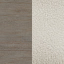 Build an inviting kitchen or dining room with this seven-piece modern farmhouse dining set at its heart. Designed for casual ambiance, it features a rectangular dining table complete with a trestle base with angular details that are sure to draw the eye. A coastal grey finish complements acacia veneer over acacia wood and MDF, creating a strong, durable set that's built to last. The table is a rectangular design to comfortably seat six, perfect for the family or entertaining friends. Six side chairs add modified ladder backs for depth and texture, with creamy upholstery fabric over foam padded seats for exceptional comfort.