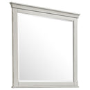 Rustic with a tropical vibe, five-piece bedroom set comes complete with a platform bed, single nightstand, chest, and a dresser and mirror combo. A paneled headboard and footboard feature a shutter style design, as well as the dresser cabinets. This entire set also offers a subtle, wire-brushed finish that boasts a strong wood grain pattern. Extra details include a nightstand with a convenient pull-out service tray and cord access for charging handheld devices, as well as felt-lined top drawers and soft-closing drawer glides. Across the set, each drawer is adorned with a dark gunmetal hardware.