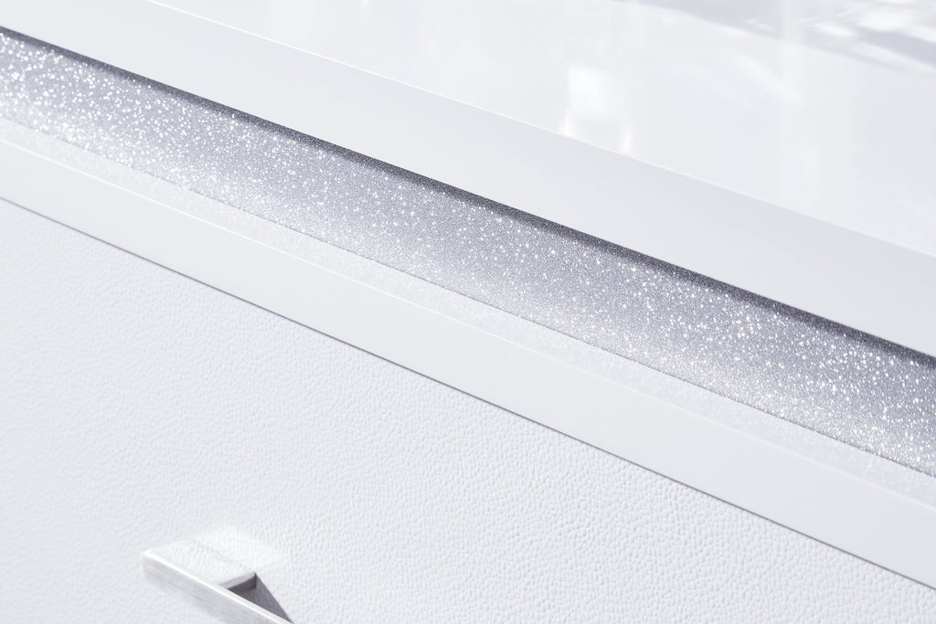 This chest of drawers is a showstopper, bringing a touch of modern glamour to your sanctuary. A sleek white finish and inset glitter accents create a sophisticated feel, while spacious drawers provide practical storage. It’s a simply stunning way to achieve the bedroom of your dreams.
